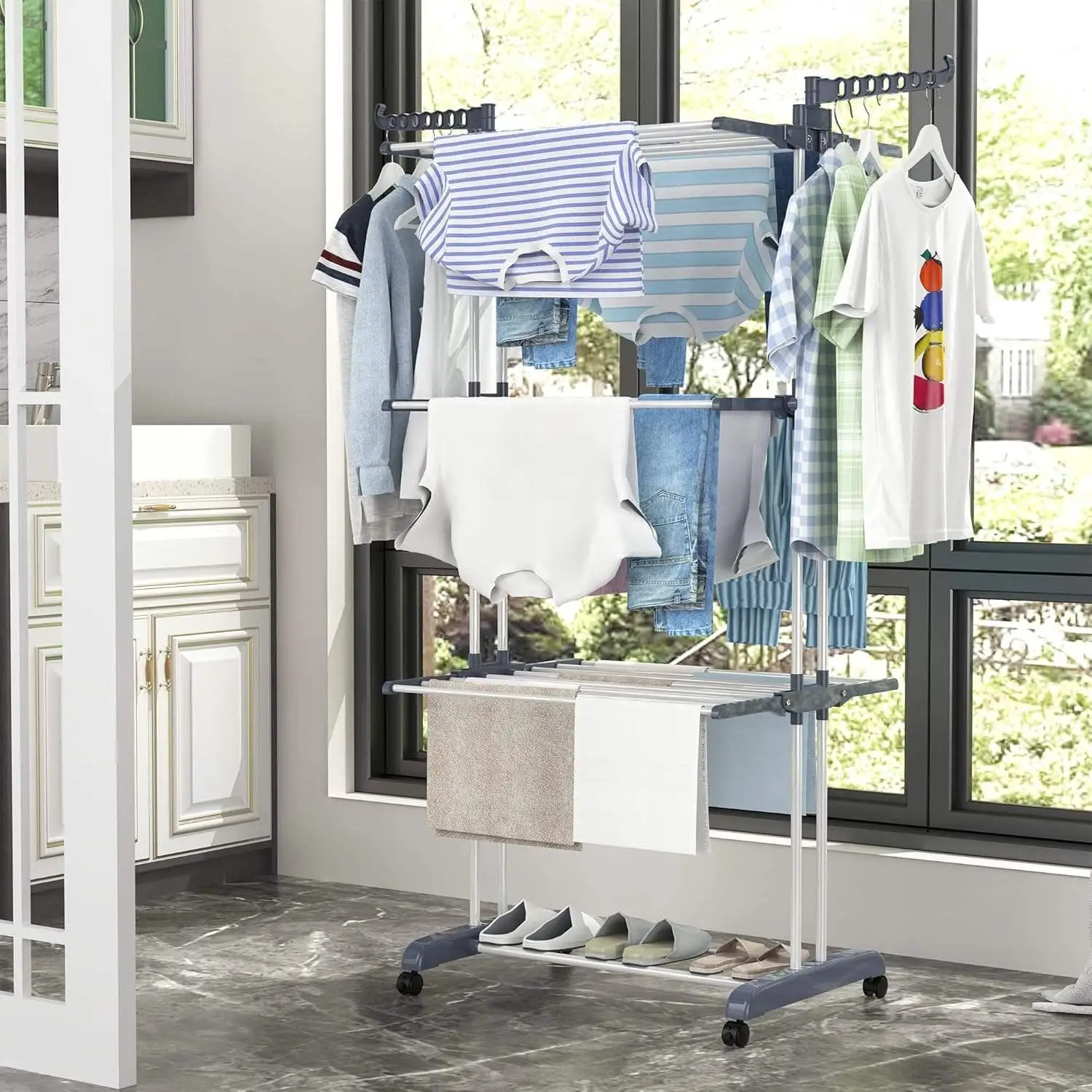 Household Metal Foldable Clothes Drying Rack Organizer for Clothes Iron Plastic Shoes Storage Bag for Home Wardrobe & Bathroom