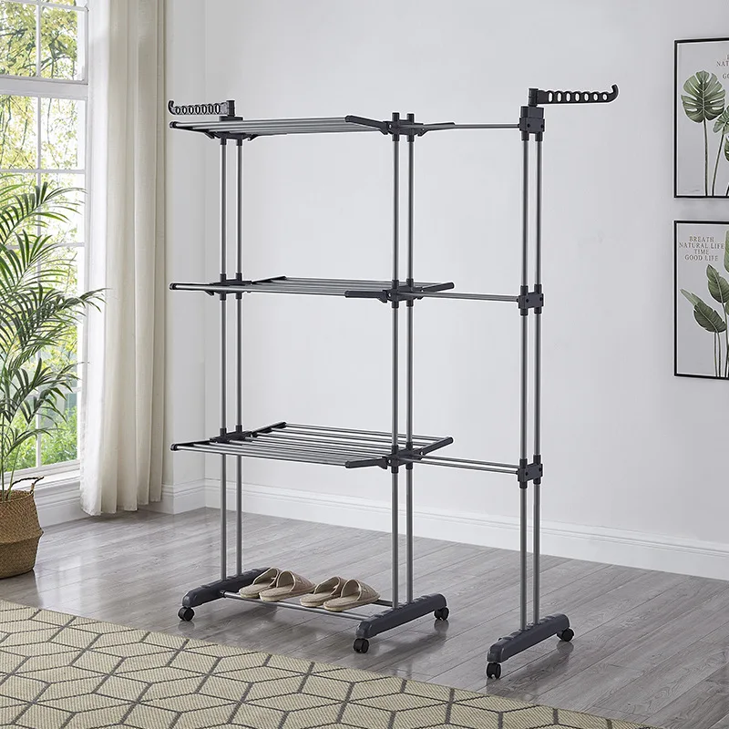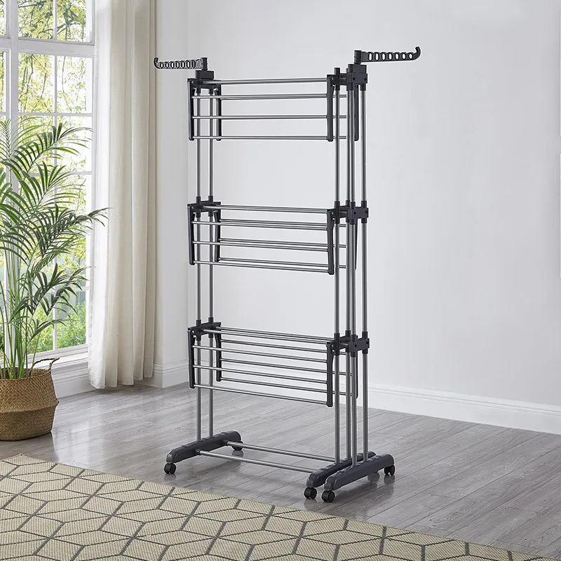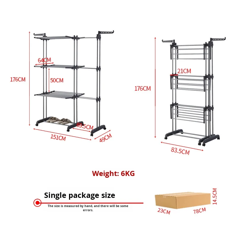 Household Metal Foldable Clothes Drying Rack Organizer for Clothes Iron Plastic Shoes Storage Bag for Home Wardrobe & Bathroom